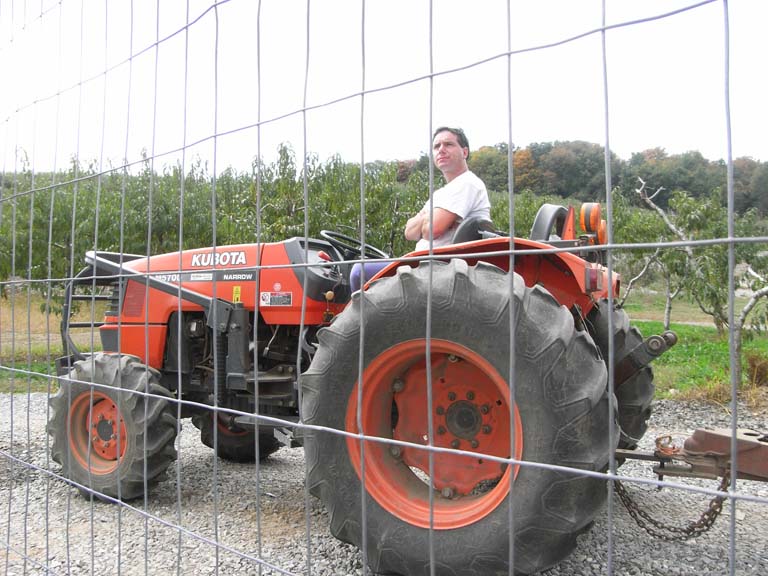我々の順番が回ってきました。残念ながら「KUBOTA」製ではなく、メーカー名は覚えてないけど青いトラクター。 何はともあれ、トラクターに乗ってりんご狩りに出発です!